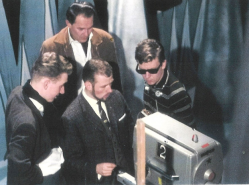 På bildet er Jan bak kamera, omkranset av en elev, Erik Diesen – og inspisient Harald Heide Steen Jr., for anledningen med solbriller.